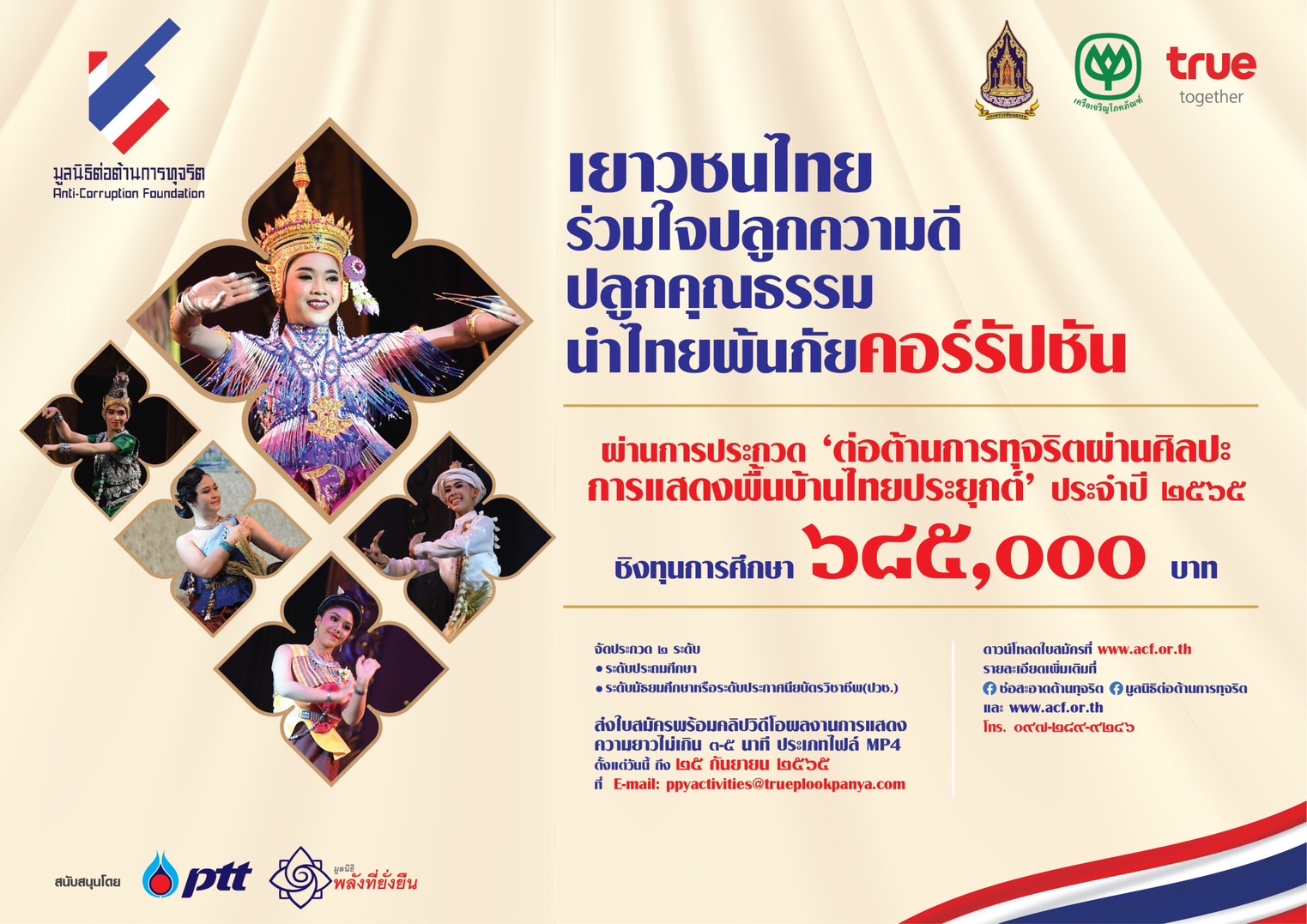 พลาดไม่ได้!! ขอเชิญน้องๆ เข้าร่วมประกวด ‘ต่อต้านการทุจริตผ่านศิลปะการแสดงพื้นบ้านไทยประยุกต์’ ประจำปี 2565