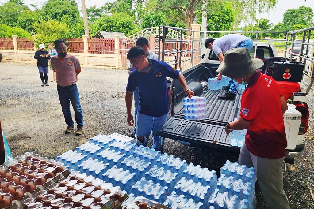 เริ่มจากการมอบเนื้อสุกร ไข่ไก่สดซีพี และน้ำดื่ม แก่ นายสุพจน์ ยศสิงห์คำ ผู้ว่าราชการจังหวัดสิงห์บุรี โดยมี นายสุรเดช สมิเปรม ผู้ตรวจราชการกระทรวงเกษตรกรและสหกรณ์ พร้อมทั้ง นายธนยศ นงบาง ปศุสัตว์จังหวัดสิงห์บุรี นำเจ้าหน้าที่กลุ่มงานพัฒนาคุณภาพมาตรฐานสินค้า ร่วมกันรับมอบ เพื่อส่งมอบแก่ โรงครัวพระราชทาน มูลนิธิอาสาเพื่อนพึ่ง (ภาฯ) ยามยาก สภากาชาดไทย สู้ภัยน้ำท่วมจังหวัดสิงห์บุรี ช่วยบรรเทาความเดือดร้อนแก่ประชาชนในอำเภออินทร์บุรี ที่ได้รับผลกระทบจากอุทกภัย ทั้งใน ต.ชีน้ำร้าย ต.อินทร์บุรี ต.ประศุก และ ต.ทับยา รวม 4 ตำบล 29 หมู่บ้าน 5,484 หลังคาเรือน ประชาชน 15,823 คน ที่ได้รับความเดือดร้อนด้านความเป็นอยู่และอาหารที่ไม่เพียงพอ