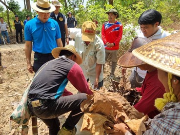 คณะได้เยี่ยมชมการปฏิบัติงานแบบบูรณาการร่วมกันของภาคีเครือข่าย และเครือซีพี ในโครงการฯ ในพื้นที่ป่าชุมชน และจุดรวบรวมใบไม้แห้งที่ชุมชนช่วยกันเก็บรวบรวมออกมาจากป่าชุมชน จำนวน 3 แห่ง ได้แก่ บ้านมหาธาตุ บ้านแม่หาด และบ้านป่าไผ่ มีเป้าหมายคือ การช่วยกันลดเชื้อเพลิงธรรมชาติ ที่ก่อให้เกิดไฟป่าในพื้นที่ป่าชุมชน อันเป็นสาเหตุการเกิดหมอกควันและฝุ่น PM 2.5 ในภาคเหนือ บริเวณแนวเขตชายแดนไทย-พม่า โดยใบไม้แห้งทั้งหมดจะเตรียมนำไปทำปุ๋ยอินทรีย์ หมุนเวียนมาใช้ในชุมชน ลดใช้สารเคมี พร้อมทั้งสร้างรายได้ให้ชุมชน