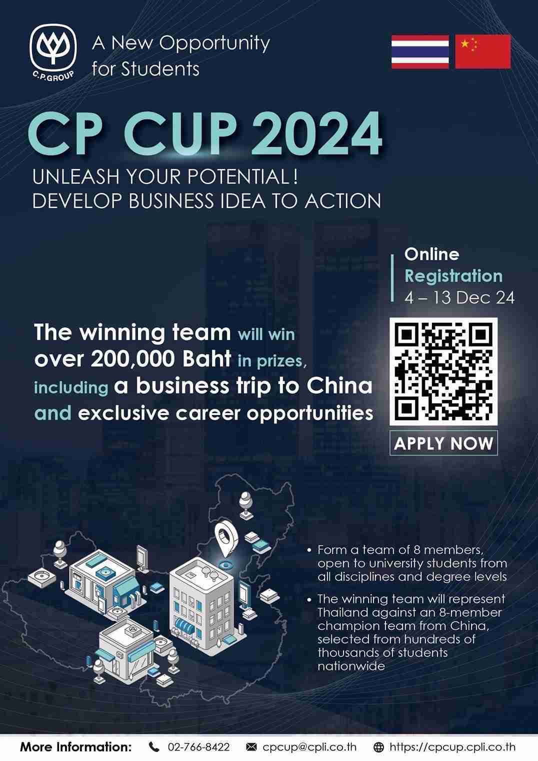 ท้าทายความคิดสร้างสรรค์-สร้างแผนธุรกิจจริง! สมัครแข่งขัน CP CUP 2024 ลุ้นไปศึกษาดูงานที่จีน ร่วมงานเครือซีพี พร้อมรางวัลใหญ่กว่า 200,000 บาท
