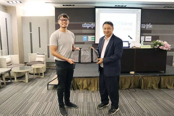 นายชวรงค์ ลิมป์ปัทมปาณี ผู้อำนวยการหลักสูตร มอบของที่ระลึกแด่ นายธณภณ เรามานะชัย