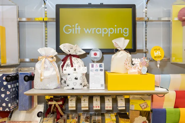 Gift Wrapping Zone โซนห่อของขวัญที่เปิดโอกาสให้คุณเลือกสไตล์การมอบของขวัญในแบบที่สะท้อนตัวตน โดยมีให้เลือกหลากหลาย พร้อมอุปกรณ์ตกแต่งสุดเก๋ไม่ว่าจะเป็นกระดาษห่อของขวัญ ถุงของขวัญหลากหลายรูปแบบ,ผ้า Furoshiki (ฟุโระชิกิ) สไตล์ญี่ปุ่น, ผ้าลวดลายเฉพาะ พร้อมความหมาย ภายใต้แนวคิด “Zero Waste Gift” ที่เป็นมิตรกับสิ่งแวดล้อม สามารถนำมาใช้งานซ้ำได้ และดูดีในทุกโอกาส พร้อมการ์ดที่คัดสรรมาให้เหมาะกับหลากหลายเทศกาล และโอกาสสำคัญ