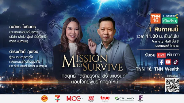 TNN ขอเชิญร่วมงานสัมมนา Mission To Survive: เผชิญหน้าวิกฤต พิชิตโอกาส @สัญจรโคราช โดยจะจัดขึ้นวันศุกร์ที่ 1 สิงหาคม 2568 เริ่มตั้งแต่เวลา 11.00 น. เป็นต้นไป ณ Variety Hall ชั้น 3 เดอะมอลล์โคราช สามารถเข้าร่วมฟรี! ไม่มีค่าใช้จ่าย