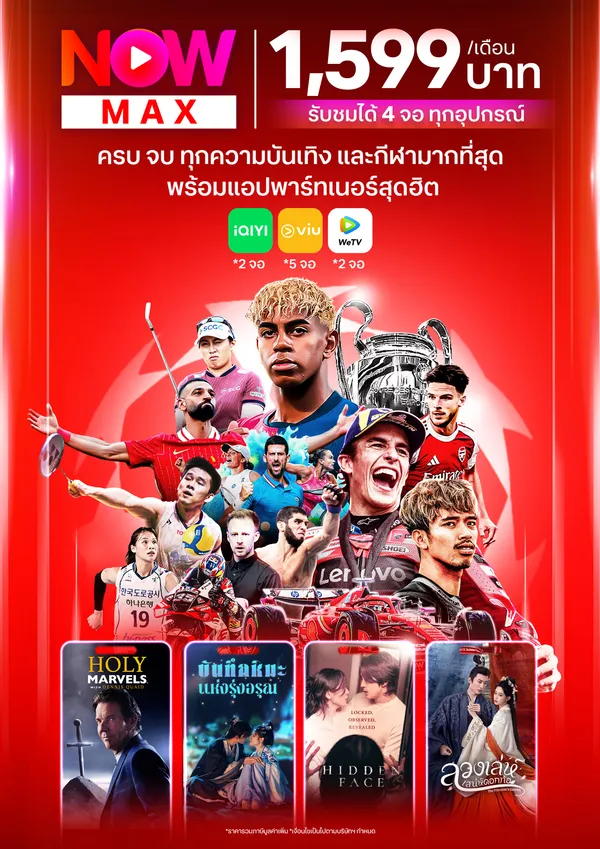 สมัครและดูได้แล้ววันนี้ NOW MAX 1,599 บาท/เดือน (4จอ ดูได้ทุกอุปกรณ์)