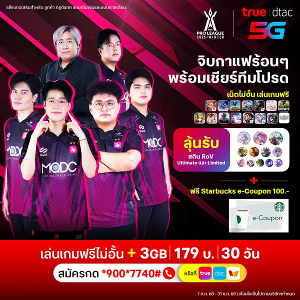 กรุงเทพฯ 16 ตุลาคม 2568 – เตรียมพร้อมระเบิดความมันส์ทั่วประเทศ... ทรู คอร์ปอเรชั่น ชวนคอเกมมารวมตัวที่บูธ True dtac 5G x TrueID ภายในงาน gamescom asia x Thailand Game Show 2025 เสิร์ฟแพ็กใหม่ “PlayCup Combo” ที่ออกแบบมาเพื่อเกมเมอร์โดยเฉพาะ จัดเต็มความคุ้มในแพ็กเดียว ด้วยเน็ต ไม่อั้นสำหรับ 15 เกมดังยอดนิยม รับเน็ต 3GB ในราคาเพียง 179 บาทต่อ 30 วัน สมัครง่ายๆผ่าน True App, TrueMoney หรือกด *900*7740# โทรออก พร้อมปลดปล่อยความสนุกไม่รู้จบ ไปกับ TrueID Game Hub ร่วมเป็นคนไทยกลุ่มแรกที่จะได้ทดลองใช้งานฟีเจอร์ TrueID Game Hub สุดยอดคลังเกมสุดฮิต กว่าหลายร้อยเกม! คอเกมตัวจริงห้ามพลาด! รวมถึงโปรโมชั่นสุดพิเศษจาก True Online กับ AI Tech Package ใหม่! เน็ตบ้านแรง 1 Gbps/1 Gbps พร้อม AI Network จัดสรรสปีดตามไลฟ์สไตล์ของทุกคนในบ้าน เพียง 799 บ./เดือน รับเร้าเตอร์ 2 ตัว + ซิม 20 GB + VIU Premium และ ส่วนลด 15% เติมเกมบน Gaming Nation