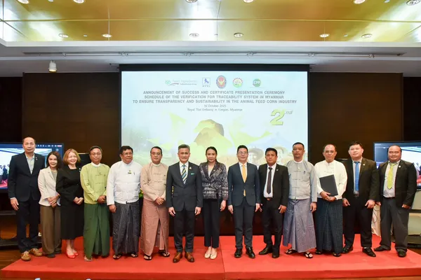 16 ตุลาคม 2568 – สถานเอกอัครราชทูตไทย ณ กรุงย่างกุ้ง ร่วมกับเครือเจริญโภคภัณฑ์ (CP Group) สมาคมผู้ประกอบการข้าวโพดเลี้ยงสัตว์เมียนมา (MCIA) และ Control Union จากเนเธอร์แลนด์ จัดพิธีรับรองความสำเร็จครบรอบ 1 ปีของ “ระบบตรวจสอบย้อนกลับข้าวโพดเลี้ยงสัตว์ในเมียนมา” (Myanmar Corn Traceability System) ซึ่งเป็นกลไกสำคัญในการแก้ปัญหาหมอกควันข้ามพรมแดนและผลักดันการค้าเกษตรกรรมอย่างยั่งยืน ก่อนที่ประเทศไทยจะเริ่มใช้ มาตรการข้าวโพดปลอดการเผา อย่างเป็นทางการในวันที่ 1 มกราคม 2569 พิธีดังกล่าวจัดขึ้น ณ สถานเอกอัครราชทูตไทย กรุงย่างกุ้ง โดยมีหน่วยงานสำคัญจากทั้งสองประเทศเข้าร่วมอย่างคับคั่ง ทั้งจากกระทรวงพาณิชย์ สำนักงาน GISTDA ของไทย สมาคม MCIA ของเมียนมา และภาคเอกชนผู้ประกอบการหลักในห่วงโซ่อุปทาน ได้แก่ CPP Fertilizer, Bangkok Produce Merchandising (BKP) และ Myanmar C.P. Livestock ซึ่งทั้ง 4 รายนี้ได้รับมอบ Traceability Recommendation Letter จาก Control Union เพื่อรับรองผลการดำเนินงานในระบบตรวจสอบย้อนกลับตลอดห่วงโซ่คุณค่าอย่างเป็นทางการ