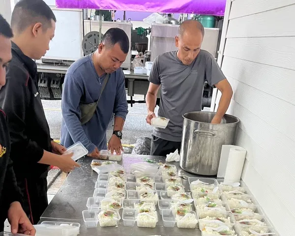 ขณะเดียวกัน คู่ค้าของซีพีเอฟ ได้เปิด “ครัวกลางอะฮ์ลัมไก่อบโอ่งจะนะ” ระดมทีมงานจิตอาสาร่วมกันปรุงอาหารสดใหม่ทำเป็นข้าวกล่อง เพื่อนำไปมอบแก่ชาวชุมชนในเขตอำเภอจะนะ จังหวัดสงขลา โดยมีซีพีเอฟร่วมสนับสนุนวัตถุดิบเนื้อไก่สด 500 กิโลกรัม และไข่ไก่สดซีพี 1,500 ฟอง สำหรับปรุงอาหารในวันแรก