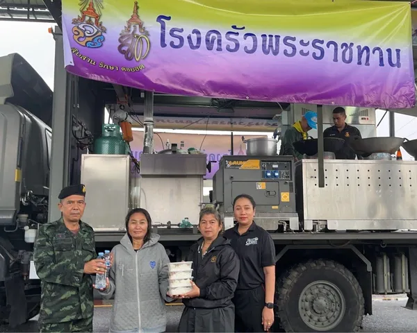 มณฑลทหารบกที่ 42 ค่ายเสนาณรงค์ อำเภอหาดใหญ่ จังหวัดสงขลา เปิด “ครัวสนามพระราชทาน” เพื่อประกอบอาหารแจกจ่ายให้กับประชาชนในพื้นที่อำเภอหาดใหญ่ ช่วยบรรเทาความเดือดร้อน ซีพีเอฟจึงร่วมสนับสนุนเนื้อไก่สด ไข่ไก่สดซีพี 3,000 ฟอง และน้ำดื่ม โดยมี พลตรี ภูมเดชา พ่วงเจริญ ผู้บัญชาการมณฑลทหารบกที่ 42 เป็นผู้รับมอบวัตถุดิบ เพื่อเป็นวัตถุดิบในการประกอบอาหารในเบื้องต้น ให้ครัวเดินเครื่องได้ต่อเนื่องในช่วงเวลาเร่งด่วนนี้