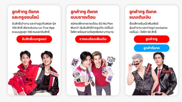 “แคมเปญ “TRUE DTAC5G FANDOM OF SMILE – อัพสัญญาณความสุข ยิ้มยกด้อม” จึงไม่ใช่เพียงกิจกรรมแฟนปาร์ตี้ แต่คือสัญลักษณ์ของการรวมพลังแห่งความสุข ที่สะท้อนความตั้งใจของทรูในการสร้างช่วงเวลาที่มีความหมายผ่านมาตรฐานสัญญาณใหม่ เครือข่ายอัจฉริยะ 5G และคอนเทนต์ที่เข้าถึงหัวใจของทุกคน และเพื่อให้การ ‘UPสัญญาณ UPความสุข’ ครั้งนี้อบอวลไปด้วยพลังบวก เรายังได้ชวน 4 สมาชิกครอบครัวทรู ‘เจมีไนน์–โฟร์ท’ และ ‘ฟอส–บุ๊ค’ มาร่วมถ่ายทอดความสุขผ่านกิจกรรมสุดพิเศษที่สะท้อนความสัมพันธ์ของคนยุคนี้กับเทคโนโลยีที่อยู่ใกล้ใจมากขึ้น”