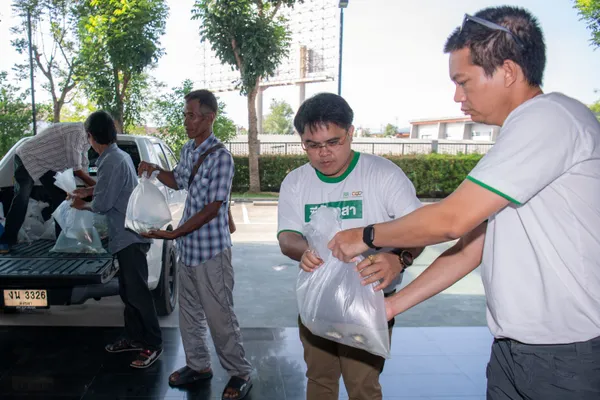 ในระยะแรก มูลนิธิฯ ได้ประสานกลุ่มพนักงาน ซีพีอาสา ส่งมอบลูกปลากะพงให้แก่เครือข่ายประมงพื้นบ้านในหลายพื้นที่ อาทิ เครือข่ายบ้านปลาหมายเลข 9 และ 10 ฟาร์มทะเลชุมชนบ้านบางไหน และเครือข่ายเกษตรกรต้นแบบโครงการซีพีพัฒนาอาชีพตามดำริ พลเอกเปรม ติณสูลานนท์ เพื่อช่วยประคับประคองความเสียหาย ลดภาระต้นทุน และฟื้นฟูผลผลิตที่สูญเสียไปจากภัยพิบัติ
