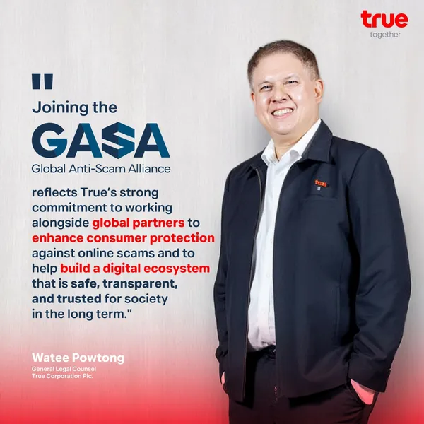 ซึ่ง ทรู คอร์ปอเรชั่น ได้แสดงความเป็นผู้นำในประเทศไทยอย่างชัดเจน ด้วยการเข้าร่วมเป็นสมาชิกผู้ก่อตั้งของ GASA Chapter Thailand และความมุ่งมั่นที่มีตั้งแต่ในระยะเริ่มต้นนี้ จะเป็นกลไกเสริมความแข็งแกร่งและผลักดันความพยายามในการรับมือกับแหล่งก่ออาชญากรรมหลอกลวง การฉ้อโกงผ่านระบบโทรคมนาคม และการปลอมแปลงตัวตนออนไลน์ อีกทั้งสะท้อนถึงความพร้อมของประเทศไทยในการก้าวขึ้นเป็นผู้นำในระยะถัดไปของการต่อต้านภัยหลอกลวงอย่างมีประสิทธิภาพ ความร่วมมือครั้งนี้ถือเป็นก้าวสำคัญในการยกระดับความร่วมมือระดับภูมิภาค และร่วมสร้างอนาคตดิจิทัลที่ปลอดภัยยิ่งขึ้นให้กับชุมชนในประเทศไทยและประเทศอื่นๆ ในภูมิภาค”