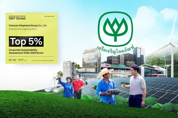 เมื่อวันที่ 25 กุมภาพันธ์ 2569 — เครือเจริญโภคภัณฑ์ (CP Group) ได้รับการจัดอันดับ Top 5% ในกลุ่มอุตสาหกรรม Industrial Conglomerates จากการประกาศผล The Sustainability Yearbook 2026 โดย S&P Global ด้วยคะแนนประเมิน 82 จาก 100 คะแนน นับเป็นการติดอันดับต่อเนื่องเป็นปีที่ 5 โดยการจัดอันดับปีนี้มีบริษัทจากทั่วโลกกว่า 9,200 แห่งเข้าร่วมการประเมิน และมีเพียง 848 บริษัทที่ได้รับการคัดเลือกเข้าสู่ Sustainability Yearbook