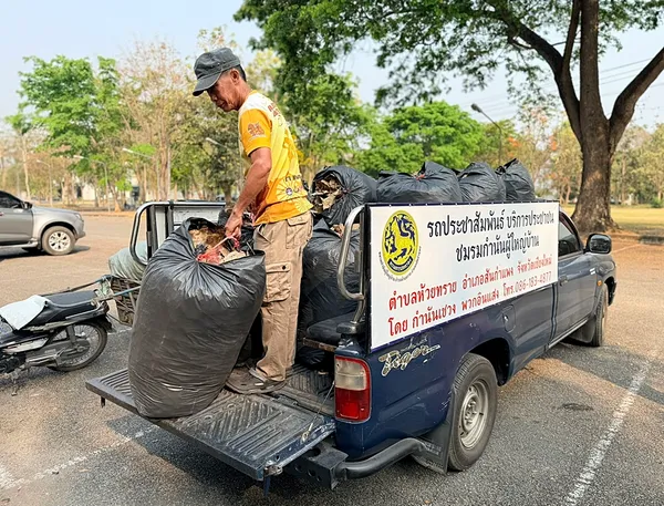 เช้าวันพุธที่ที่ว่าการอำเภอสันกำแพง จังหวัดเชียงใหม่ บรรยากาศคึกคักกว่าปกติ ชาวบ้านทยอยขี่มอเตอร์ไซค์ บางคนใช้รถกระบะ บรรทุกกระสอบใบไม้แห้งจากบ้านและไร่นามาต่อคิวหน้าจุดรับแลก “ตลาดนัดใบไม้แลกไข่” กิจกรรมเล็กๆ ของชุมชนที่กำลังช่วยแก้ปัญหาใหญ่ของภาคเหนืออย่างฝุ่น PM 2.5