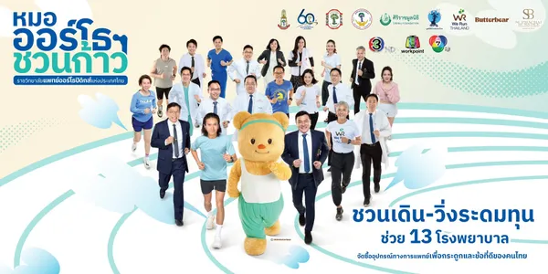 27 มีนาคม 2569, กรุงเทพฯ - ท่ามกลางสถานการณ์ที่ผู้ป่วยโรคกระดูกและข้อในประเทศไทยเพิ่มขึ้นต่อเนื่องแตะราว 7 ล้านคน หรือคิดเป็น 10% ของประชากรไทย ขณะที่เทคโนโลยีทางการแพทย์สมัยใหม่ ซึ่งช่วยเพิ่มความแม่นยำในการรักษา ลดผลกระทบจากการผ่าตัด และส่งเสริมให้ผู้ป่วยฟื้นตัวได้เร็วขึ้น ยังมีต้นทุนสูงเกินกว่าที่โรงพยาบาลในภูมิภาคหลายแห่งจะเข้าถึงได้อย่างเพียงพอ โครงการ “หมอออร์โธฯ ชวนก้าว เพื่อ 13 โรงพยาบาล” ซึ่งจัดขึ้นโดยราชวิทยาลัยแพทย์ออร์โธปิดิกส์แห่งประเทศไทย ร่วมกับ มูลนิธิแพทย์ออร์โธปิดิกส์, ศิริราชมูลนิธิ มูลนิธิก้าวคนละก้าว มูลนิธิศุภชัย - บุษดี เจียรวนนท์ We Run THAILAND และน้องเนย (Butterbear) จึงเดินหน้าต่อเนื่องด้วยพลังความร่วมมือจากทุกภาคส่วน เพื่อเชิญชวนคนไทยร่วมดูแลสุขภาพของตนเองผ่านการเดิน-วิ่ง ควบคู่กับการร่วมบริจาคสมทบทุนจัดหาอุปกรณ์ทางการแพทย์ด้านกระดูกและข้อ อันจะช่วยเพิ่มโอกาสให้ผู้ป่วยทั่วประเทศเข้าถึงการรักษาได้อย่างทั่วถึง ทันท่วงที และมีคุณภาพชีวิตที่ดียิ่งขึ้น พร้อมตอกย้ำว่าการดูแลสุขภาพของตนเองสามารถแปรเปลี่ยนเป็นพลังแห่งการให้ เพื่อส่งต่อโอกาสในการรักษาแก่ผู้ป่วยที่ยังรอความช่วยเหลือใน 13 โรงพยาบาลทั่วประเทศ