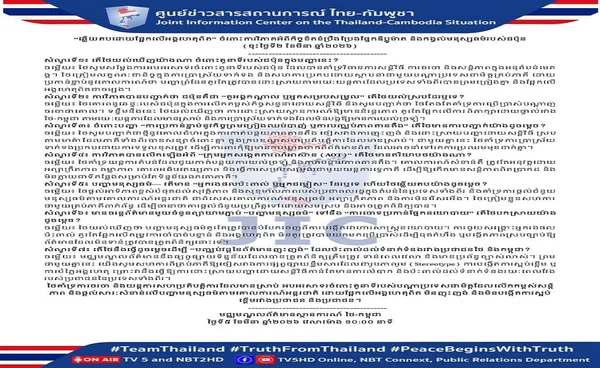 ศูนย์ข่าวสารฯ จะเผยแพร่ข้อมูลที่ตรวจสอบได้ ทันเวลา และเป็นระบบ พร้อมขอความร่วมมือทุกฝ่ายหลีกเลี่ยงการเผยแพร่เนื้อหาที่เหมารวม สร้างความเกลียดชัง หรือบิดเบือนข้อเท็จจริง เพราะจะทำให้การแก้ปัญหาเชิงสันติยากขึ้น และกระทบความสัมพันธ์ระยะยาวของประชาชนทั้งสองประเทศไทยสนับสนุนการเจรจาและกลไกความร่วมมือที่มีอยู่ ยินดีต่อบทบาทมิตรประเทศที่ส่งเสริมสันติภาพ และให้ความสำคัญกับมนุษยธรรมบนหลักสากล โดยยึดข้อเท็จจริง ไม่ยั่วยุ และไม่สร้างความเกลียดชังระหว่างประชาชน