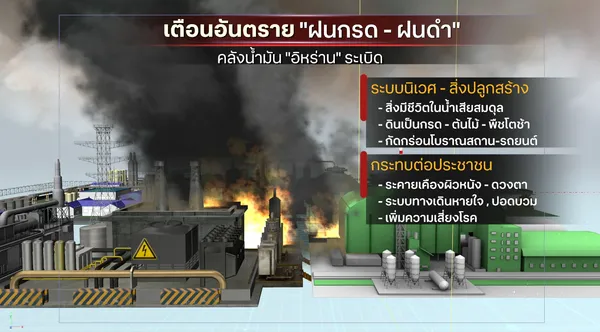 - โลกผวา! ฝนดำถล่มหลังคลังน้ำมันระเบิด ควันพิษคุกคามสิ่งแวดล้อม