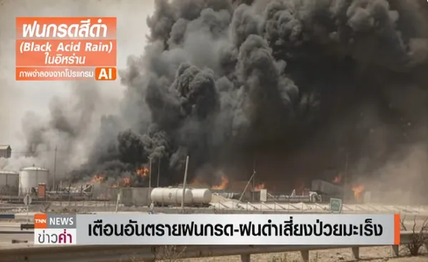 องค์การอนามัยโลก หรือ WHO และสหประชาชาติออกมาเตือน อันตรายจาก“ฝนสีดำและฝนกรดที่มาพร้อมกันเป็นอันตรายต่อประชาชนอย่างมาก โดยเฉพาะต่อระบบทางเดินหายใจ” หลังจากโรงกลั่นน้ำมันของอิหร่านถูกโจมตีจากสหรัฐฯและอิสราเอล ในพื้นที่กรุงเตหะรานหลายจุด ขณะที่ทางการอิหร่านได้แนะนำให้ประชาชน อยู่ภายในอาคารที่พักเพื่อความปลอดภัยจากฝนกรด หรือฝนที่ปนเปื้อนควันและสารเคมีจากน้ำมัน