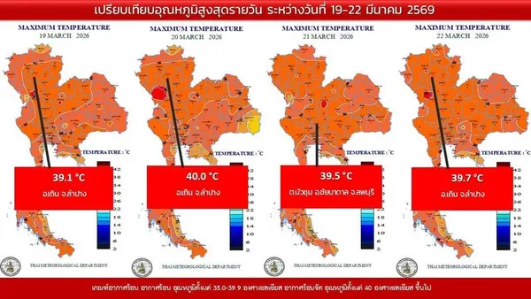 - สภาพอากาศ 21-27 มีนาคม 2569 ทั่วไทยอากาศร้อนตอนกลางวัน กทม. อุณหภูมิสูงสุด 38 องศาฯ