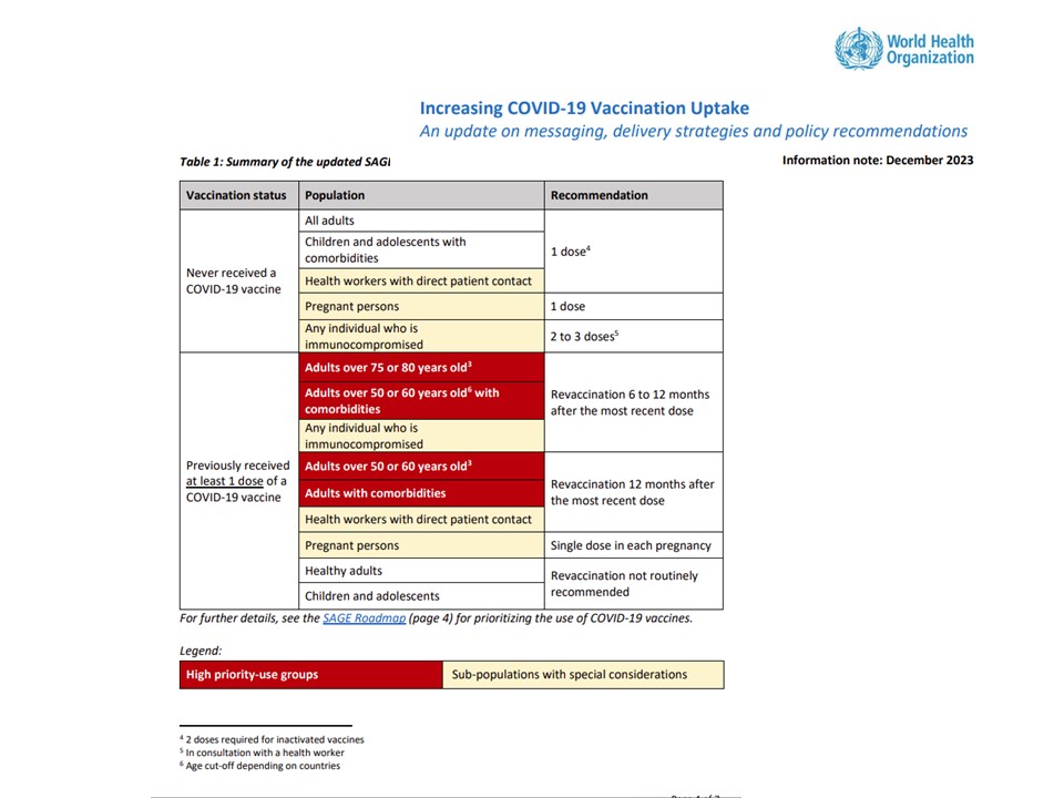 บทสรุปขององค์การอนามัยโลกเกี่ยวกับโควิด 19 วัคซีน ธันวาคม 2566