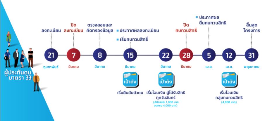 วันนี้ (5 เม.ย.64) ผู้สื่อข่าวรายงานว่า ประชาชนกลุ่มที่ยื่น "ทบทวนสิทธิ" ในโครงการ "ม33เรารักกัน" ที่หมดเขตปิดให้ยื่นการทบทวนสิทธิไปแล้วเมื่อวันที่ 28 มี.ค.64 ที่ผ่านมานั้น ในวันนี้ 5 เม.ย.64 เป็นวันแรกที่จะประกาศผลการทบทวนสิทธิว่าจะได้รับสิทธิหรือไม่ โดยจะประกาศผ่านเว็บไซต์ www.ม33เรารักกัน.com