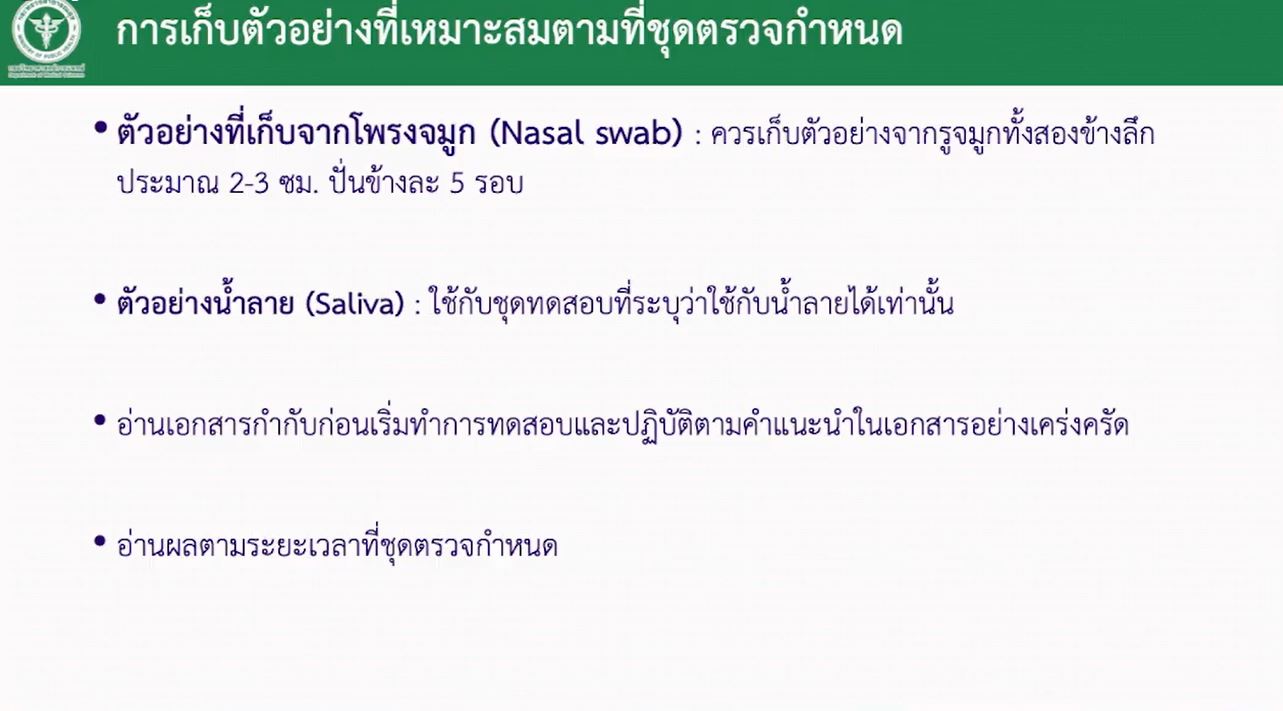โดยปัจจุบัน อย.ขึ้นทะเบียน แล้ว 193 รายการ แบ่งเป็น สำหรับประชาชนทั่วไป หรือ Home use 100 รายการ สำหรับบุคลากรทางการแพทย์ 93 รายการ ดังนั้น กระทรวงสาธารณสุขจึงขอให้ประชาชนตรวจสอบชุดตรวจก่อนใช้ว่าผ่านการรับรองคุณภาพจาก อย.หรือไม่ เพื่อป้องกันการเกิดผลบวกปลอมได้
