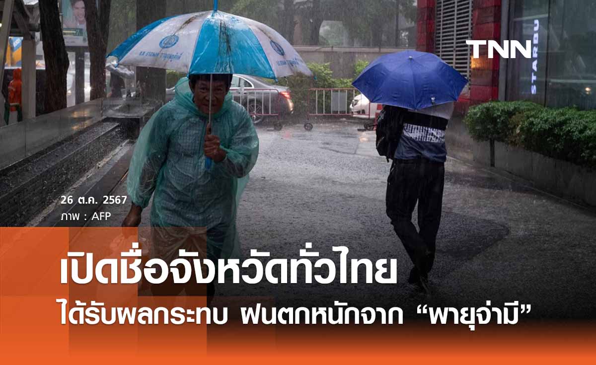 - เปิดชื่อจังหวัดทั่วไทย ได้รับผลกระทบฝนตกหนัก “พายุจ่ามี” 26 - 29 ต.ค.