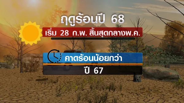 โดยฤดูร้อนปีนี้จะเริ่มตั้งแต่วันที่ 28 ก.พ. จนถึงกลางเดือนพ.ค.2568 ซึ่งการที่จะเข้าสู่ฤดูร้อนของไทย มีเงื่อนไขคือมวลอากาศเย็นต้องอ่อนกำลังลง และอากาศร้อนจะเคลื่อนเข้ามาแทน โดยอุณหภูมิสูงสุดเฉลี่ยมากกว่า 35 องศาเซลเซียส เป็นเวลาติดต่อกันหลายวัน โดยคาดว่าฤดูร้อนจะน้อยกว่าปี 2567