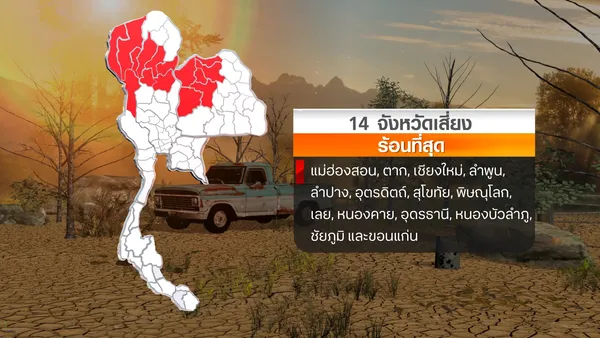 สำหรับจังหวัดที่มีโอกาสอุณหภูมิที่สูงกว่า 42 องศาเซลเซียสมีทั้งหมด 14 จังหวัด ประกอบด้วย แม่ฮ่องสอน, ตาก, เชียงใหม่, ลำพูน, ลำปาง, อุตรดิตถ์, สุโขทัย, พิษณุโลก, เลย, หนองคาย, อุดรธานี, หนองบัวลำภู และ ชัยภูมิ