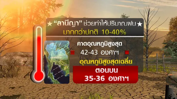 ปีนี้ยังมีปรากฎการณ์ลานีญา ซึ่งจะช่วยให้ปริมาณฝนมากกว่าปกติที่ 10-40% ของพื้นที่ ก็จะส่งผลให้หลายพื้นที่มีฝนหรือมีความชื้นในอากาศสูง ซึ่งก็จะบรรเทาความร้อนได้บ้าง แต่บางจังหวัดก็มีโอกาสที่จะเผชิญกับความร้อนโดยจะมีอุณหภูมิที่สูงถึง 42-43 องศาเซลเซียสได้ ส่วนอุณหภูมิเฉลี่ยในประเทศไทยตอนอยู่ที่ 35-36 องศาเซลเซียส นอกจากนี้มีคำเตือนให้ระวังอากาศร้อนสลับกับพายุฤดูร้อนในบางช่วงและอาจจะมีน้ำท่วมฉับพลันในบางพื้นที่ได้