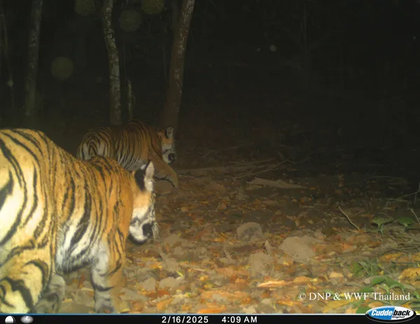 นายปรยุษณ์ ไวว่อง ผู้อำนวยการสำนักบริหารพื้นที่อนุรักษ์ที่ 14 (ตาก) เปิดเผยวันนี้ (1 เม.ย. 68) ได้รับรายงานจากนายปิยะ ภิญโญ หัวหน้าเขตรักษาพันธุ์สัตว์ป่าอุ้มผาง กล้องดักถ่ายภาพอัตโนมัติได้บันทึกภาพแม่เสือโคร่งพร้อมลูกน้อย 2 ตัว อย่างชัดเจน นับเป็นความสำเร็จครั้งสำคัญในการอนุรักษ์พันธุ์เสือโคร่งของประเทศไทยในการอนุรักษ์ผืนป่าตะวันตกมาอย่างต่อเนื่อง