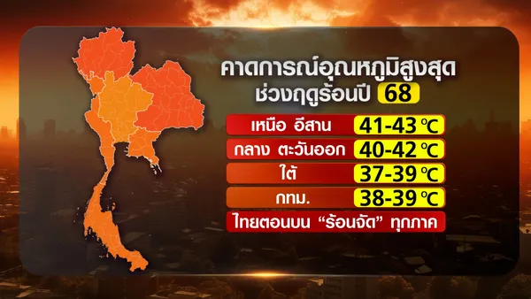 กรมอุตุนิยมวิทยาเผยว่า ฤดูร้อนปีนี้ประเทศไทยเผชิญอุณหภูมิที่สูงกว่าค่าปกติ 1.0-1.5 องศาเซลเซียส และสูงกว่าช่วงฤดูร้อนปี 2566 โดยคาดการณ์อุณหภูมิสูงสุดจะอยู่ที่ภาคเหนือและอีสานที่ระดับ 41-43 องศาเซลเซียส รองลงมาเป็นภาคกลางและตะวันออกที่ระดับ 40-42 องศาเซลเซียส สำหรับภาคใต้ 37-39 องศาเซลเซียส