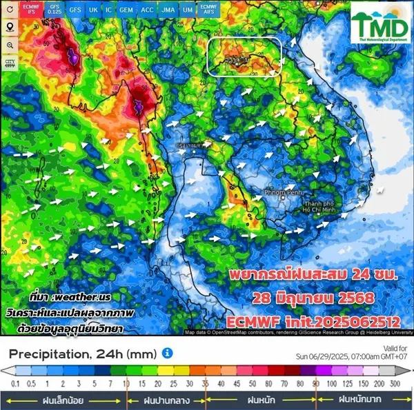 ส่วนในช่วงวันที่ 28 มิ.ย. – 1 ก.ค. ขอให้ประชาชนในภาคเหนือ ภาคตะวันออกเฉียงเหนือตอนบน และภาคตะวันออกระวังอันตรายจากฝนตกหนักและฝนที่ตกสะสม ซึ่งอาจทำให้เกิดน้ำท่วมฉับพลันและน้ำป่าไหลหลาก โดยเฉพาะพื้นที่ลาดเชิงเขาใกล้ทางน้ำไหลผ่านและพื้นที่ลุ่ม
