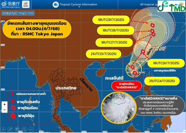 “พายุโซนร้อนดานัส” พายุหมุนเขตร้อนลูกที่ 4 ของปี ไม่กระทบไทย