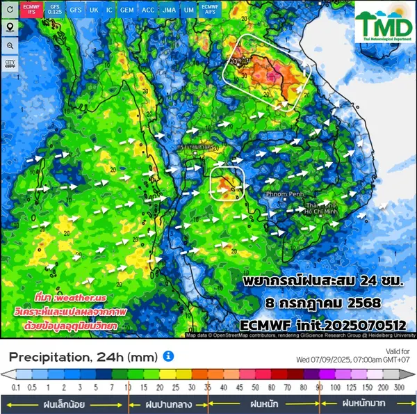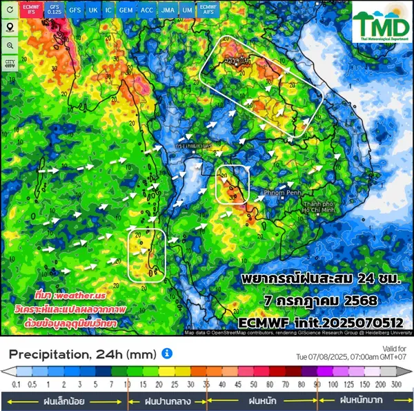 อนึ่ง พายุโซนร้อน “ดานาส”บริเวณทะเลจีนใต้ตอนบน มีแนวโน้มจะเคลื่อนเข้าใกล้ไต้หวัน ในช่วงวันที่ 7 – 9 กรกฏาคม 2568 โดยพายุนี้ไม่เคลื่อนเข้าสู่ประเทศไทย