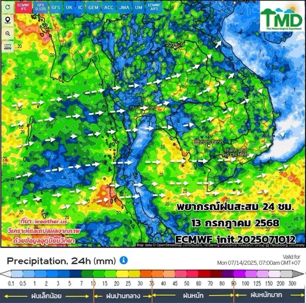 - 10-13 ก.ค. ฝนชุกทั่วไทย เหนือ อีสาน ตะวันออก ใต้ ระวังน้ำท่วมฉับพลัน