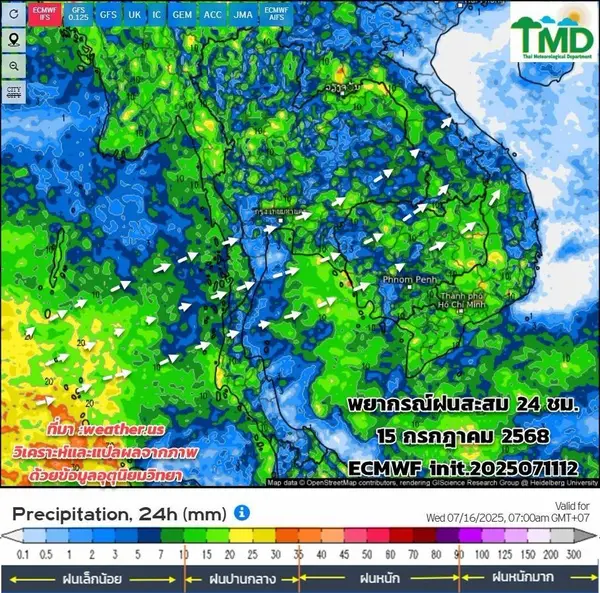 ข่าวที่เกี่ยวข้อง เตือน 16 จังหวัดฝนตกหนัก ระวังน้ำท่วมฉับพลันและน้ำป่า 20-24 ก.ค.จับตาพายุก่อตัว