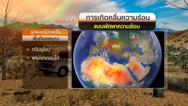 คลื่นความร้อนสามารถเกิดขึ้นได้ 2 รูปแบบหลัก ได้แก่