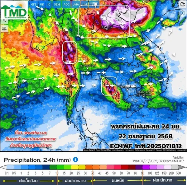 - กรมอุตุนิยมวิทยา เตือนฉบับ 3 เปิดรายชื่อจังหวัดฝนตกหนักถึงหนักมาก 19-24 ก.ค. 2568