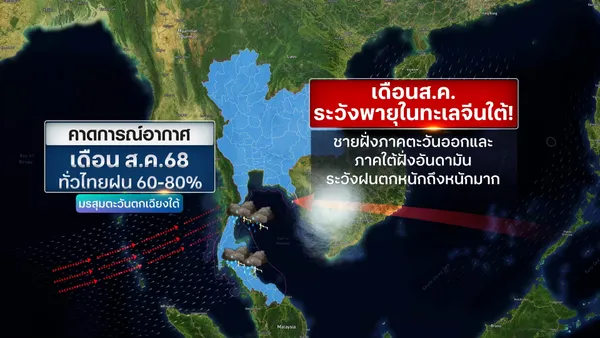 ทั้งนี้ กรมอุตุนิยมวิทยาขอให้ประชาชนติดตามพยากรณ์อากาศอย่างใกล้ชิด พร้อมเตรียมรับมือกับสภาพอากาศที่แปรปรวน เพื่อความปลอดภัยในชีวิตและทรัพย์สินตลอดเดือนสิงหาคมนี