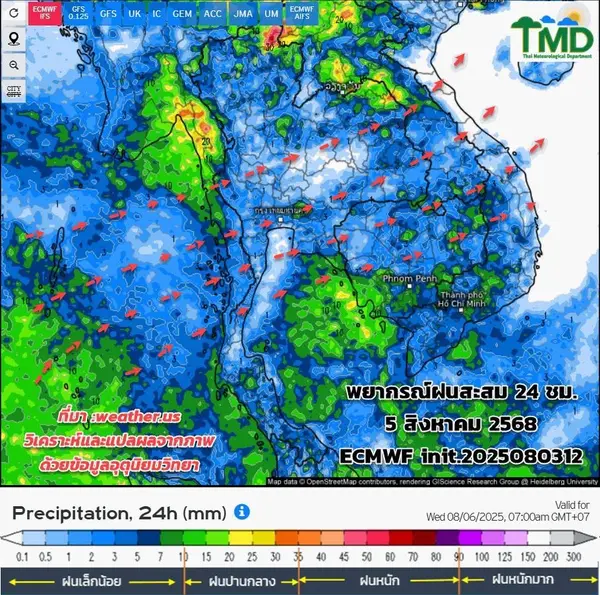 - พยากรณ์อากาศล่วงหน้า 7 วัน ทั่วไทยฝนน้อยสลับฝนหนัก 5-6 ส.ค.เตือนเหนือ-อีสาน ระวังฝนฟ้าคะนอง