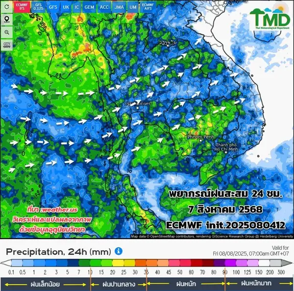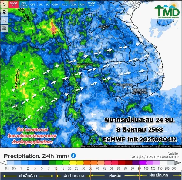 - พยากรณ์อากาศล่วงหน้า 7 วัน ทั่วไทยฝนน้อย 5-8 ส.ค.เตือนเหนือ-อีสาน ระวังฝนตกหนัก