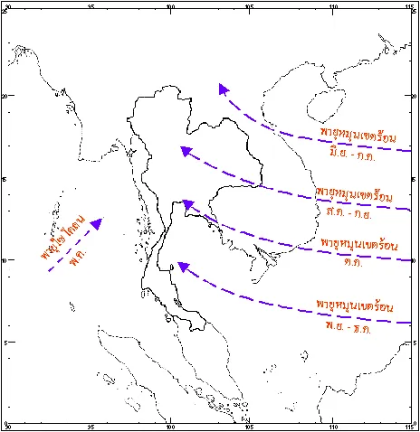 และทะเลจีนใต้เรียกว่า ไต้ฝุ่น (TYPHOON) พายุหมุนเขตร้อนที่มีอิทธิพลต่อลมฟ้าอากาศของประเทศไทย ส่วนใหญ่มีแหล่งกำเนิดในมหาสมุทรแปซิฟิก เหนือด้านตะวันตกและทะเลจีนใต้ ซึ่งมีการแบ่งเกณฑ์ความรุนแรงของพายุตามข้อตกลงระหว่างประเทศ