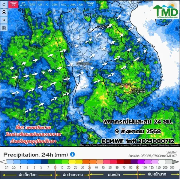 - พยากรณ์อากาศ 8 สิงหาคม 2568 ทั่วไทยมีฝนฟ้าคะนอง กทม.ตก 60%