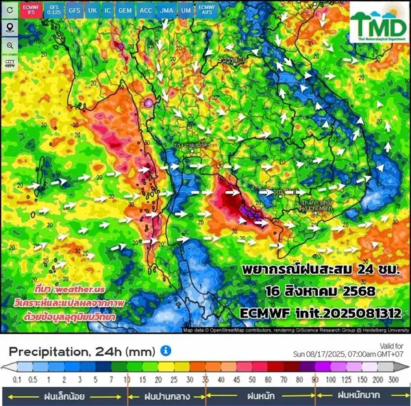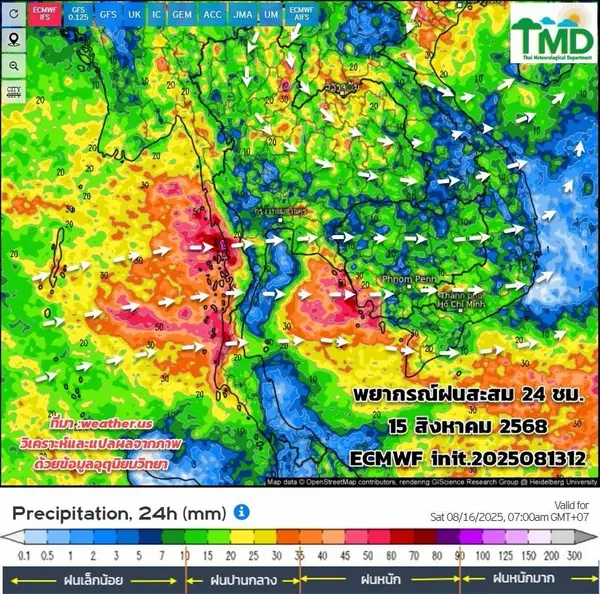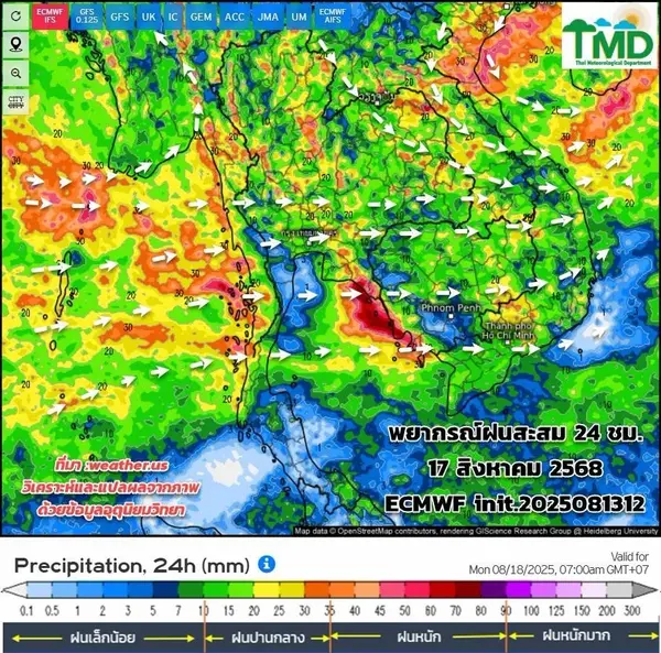 - พยากรณ์อากาศ 7 วันล่วงหน้า 13-18 ส.ค. ฝนเพิ่มทั่วไทย ตะวันออก-ใต้ ฝนหนักมาก