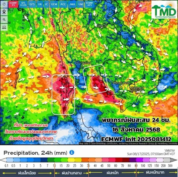 - พยากรณ์อากาศวันนี้ 15 สิงหาคม 2568 เตือน 8 จว. ฝนถล่มเสี่ยงน้ำท่วมหนัก
