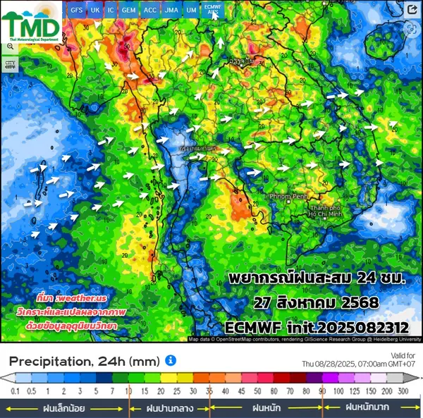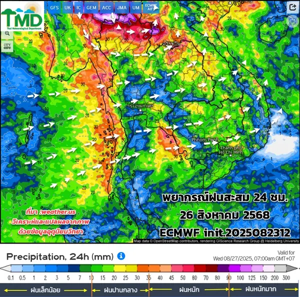 - 22-27 ส.ค. ฝนชุกทั่วไทย จับตาหย่อมความกดอากาศต่ำ เคลื่อนเข้าใกล้ชายฝั่งเวียดนาม