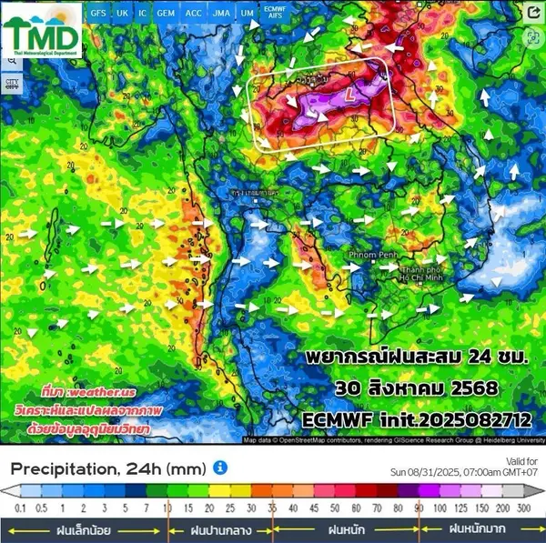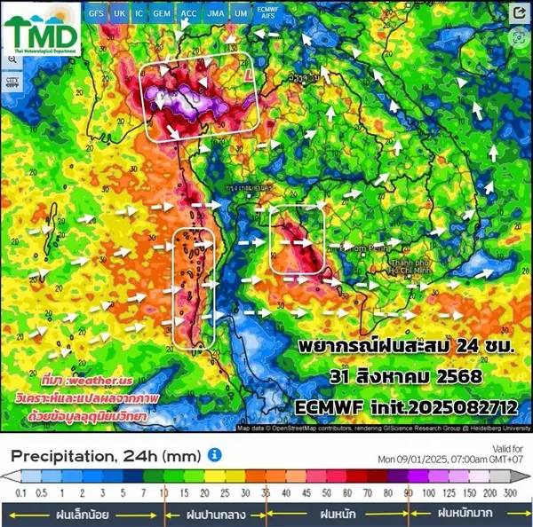 - พยากรณ์อากาศ 7 วันข้างหน้า ทั่วไทยมีฝนตกหนัก ถึงต้นก.ย.นี้