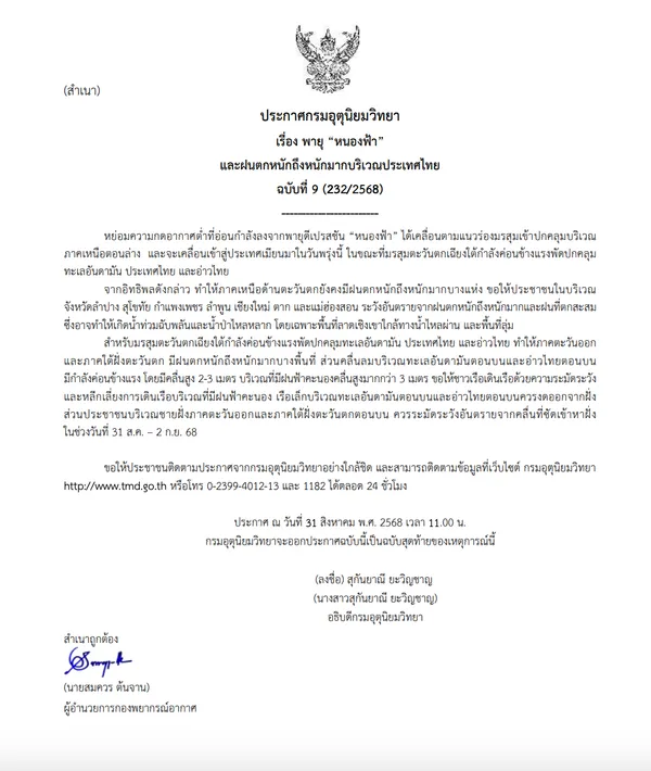 กรมอุตุนิยมวิทยาขอแจ้งว่า นี่เป็นประกาศฉบับสุดท้ายของเหตุการณ์นี้