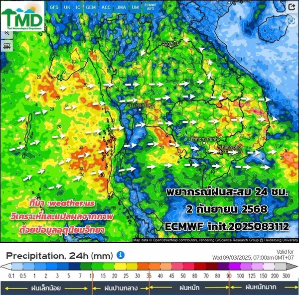- พยากรณ์อากาศวันนี้ 2 กันยายน 2568 ฝนตกหนักทั่วไทย กทม.ชุ่มฉ่ำ 70%
