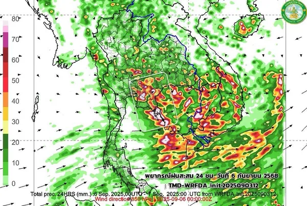 - กรมอุตุฯ คาดหมายสภาพอากาศเดือนกันยายน 2568 ฝนตกชุกและต่อเนื่อง 60-80% ของพื้นที่